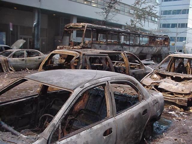 Electro-magnetic pulses (EMP) escaping through window slits and falling debris may have caused the vehicle damage along West Broadway and the car lot.