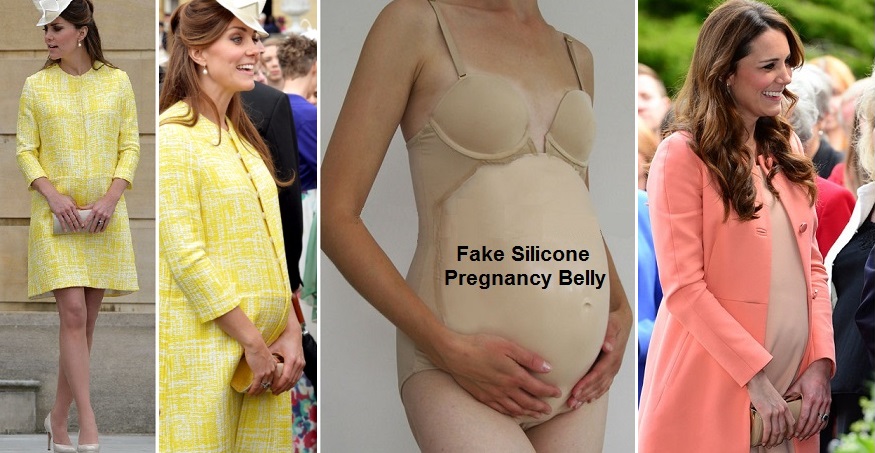 To cover up the scandalous use of a surrogate, Kate has been wearing a silicone pregnancy belly for photo ops which are available in 3, 6 and 9 month sizes.